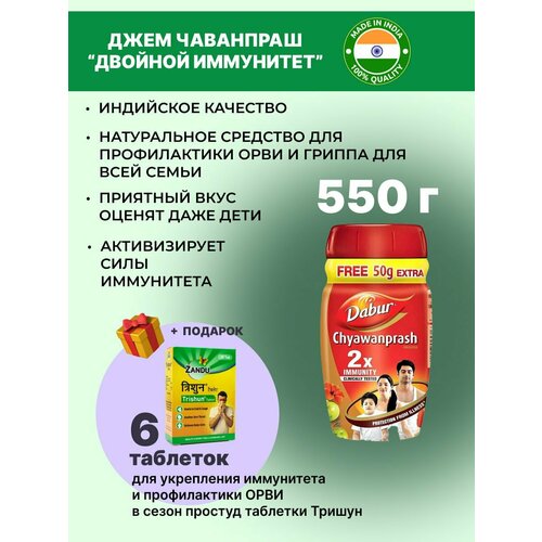 Дабур Чаванпраш Двойной иммунитет (Dabur Chyawanprash Double Immunity) для иммунитета 550 г + Тришун 6 таб