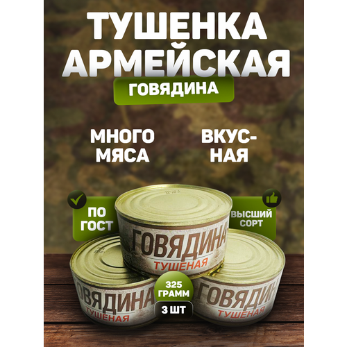 Говядина тушеная армейская Лыткарино высший сорт ГОСТ, 325 г. 3 банки