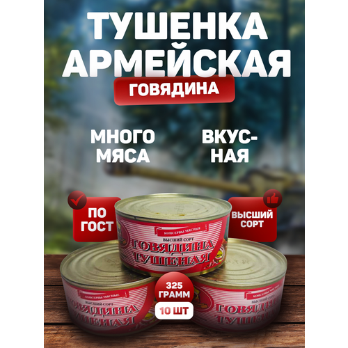 Говядина тушеная армейская Калмыкия высший сорт ГОСТ, 325 г. 10 банок