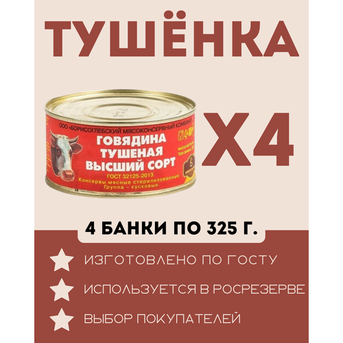 Тушенка ГОСТ, высший сорт, 325 гр. 4 шт.