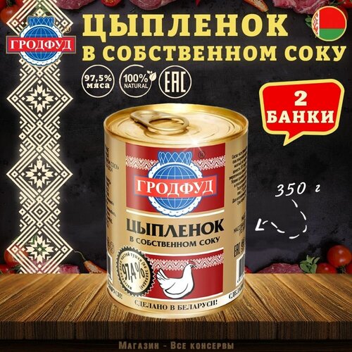 Цыпленок в собственном соку, Гродфуд, 2 шт. по 350 г