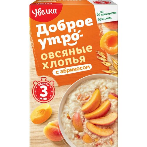 Хлопья овсяные увелка Доброе утро, с натуральным абрикосом, 240 г - 5 шт.