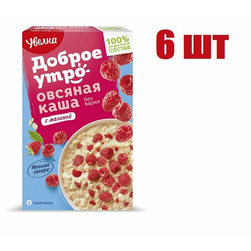 Каша овсяная "Увелка" с малиной без варки 100% натуральный состав 200 г 6 шт