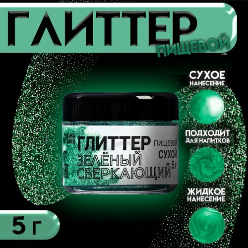 Глиттер кандурин "Сверкающий зелёный", фракция 50-500 µm, 5 г