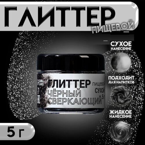 Глиттер кандурин "Сверкающий чёрный", фракция 50-500 µm, 5 г