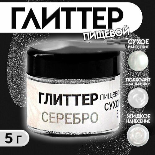 Глиттер кандурин пищевой "Серебро", 30 фракция 30-100 µm, 5 г