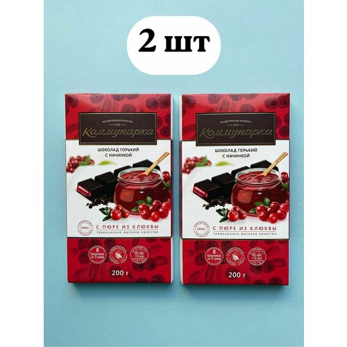 Коммунарка Шоколад с пюре из клюквы, горький, порционный, 200 г - 2 шт./