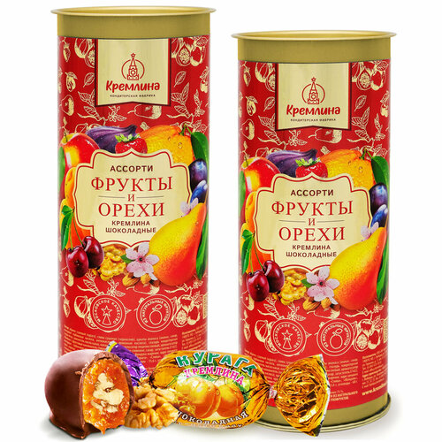 Конфеты из сухофруктов "Ассорти Фрукты и орехи Кремлина шоколадные" "москва красная/москва золотая", спайка 2 тубы по 250гр