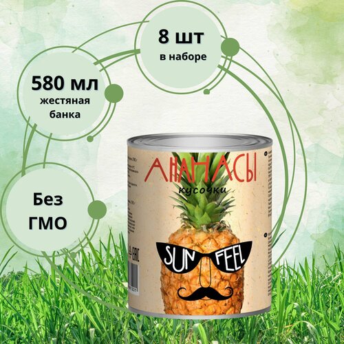 Ананасы кусочки SUNFEEL, 580 мл x 8 шт