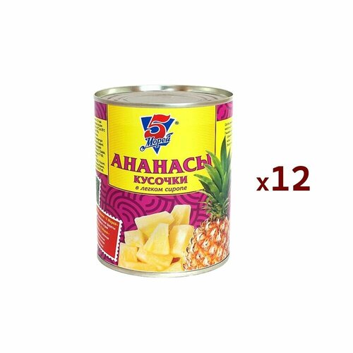 Ананасы "5Морей" кусочки в легком сиропе 565г - 12шт