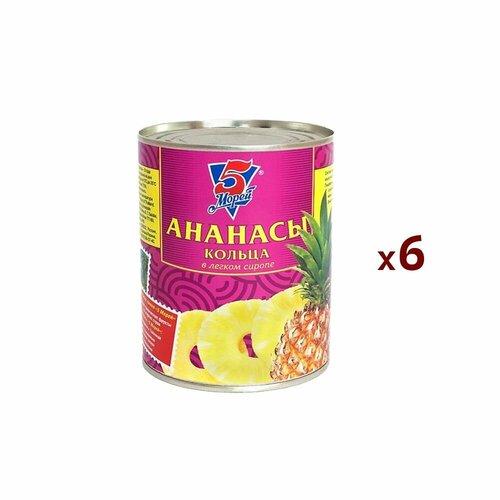 Ананасы "5Морей" кольца в легком сиропе 565г - 6шт