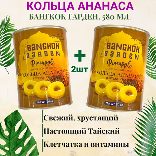 Кольца ананаса в лёгком сиропе, Бангкок Гарден. 580 мл. Две упаковки.