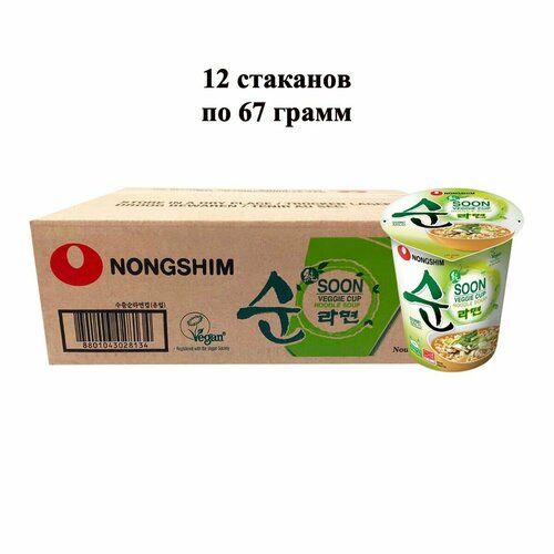 Лапша быстрого приготовления Soon Veggie овощная Nongshim, стакан 67 г х 12 шт
