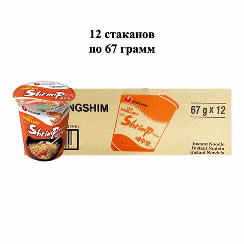 Лапша быстрого приготовления креветочная Nongshim, стакан 67 г х 12 шт