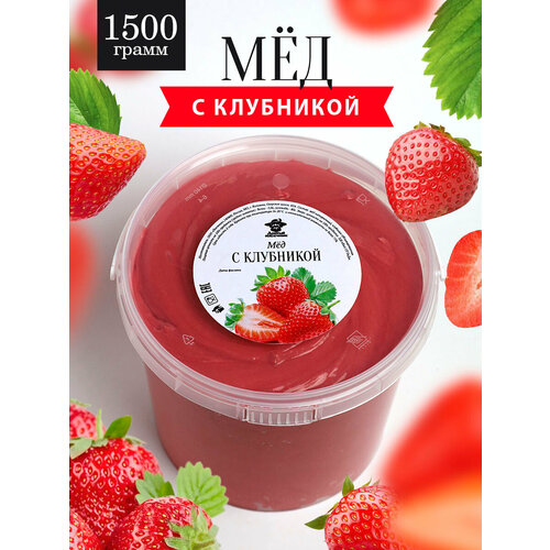 Мед с клубникой 1500 г, для иммунитета, полезный подарок