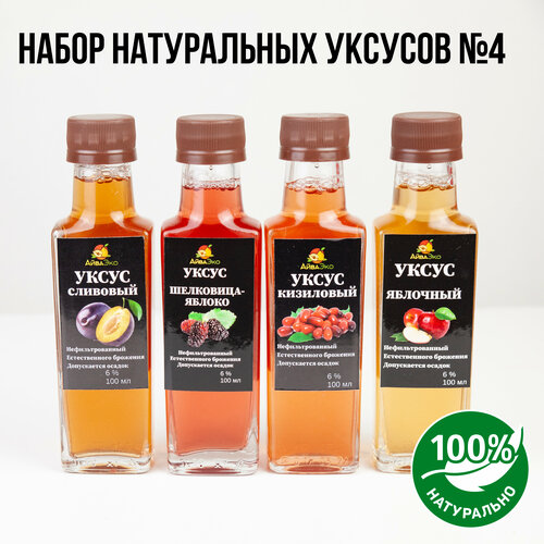 Эко №1"Набор натуральных нефильтрованных уксусов в количестве 4 штук по 100 миллилитров. В...