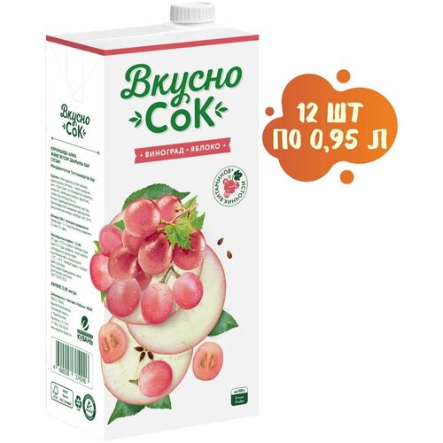 Напиток сокосодержащий яблочно-виноградный 12 шт. по 0,95 л , ВкусноСок