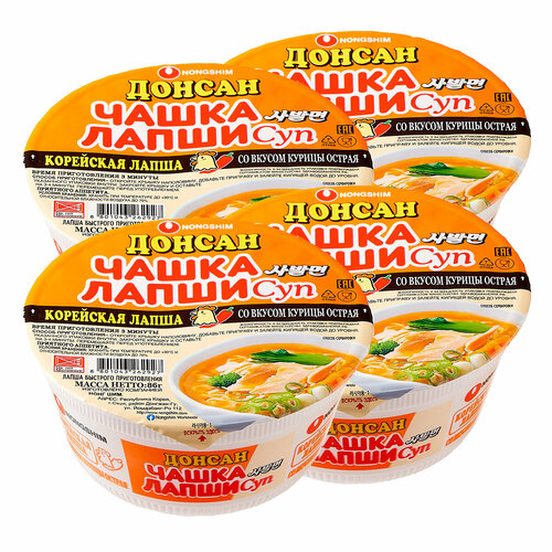 Лапша быстрого приготовления Донсан со вкусом курицы острая Nongshim, чашка 86 г х 4 шт