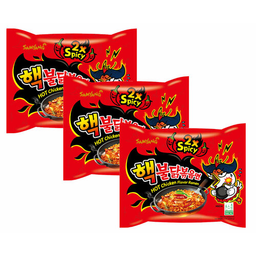 Лапша быстрого приготовления Samyang Hot Chicken Flavour Ramen 2x Spicy со вкусом курицы в супер остром соусе, 140 г (3 шт)