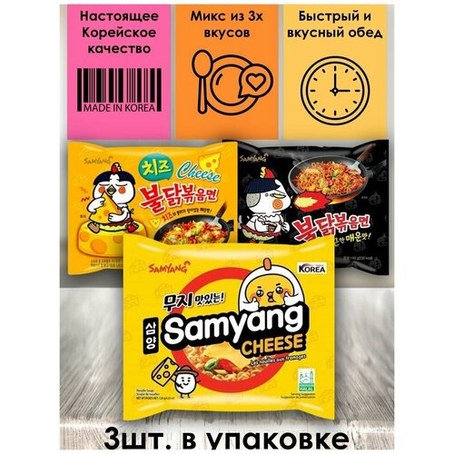 SamYang/Самьянг Лапша быстрого приготовления, Корея, микс 3 вкуса (Самянг Чиз, Хот Чикен Рамен, Чиз Хот Чикен Рамен)