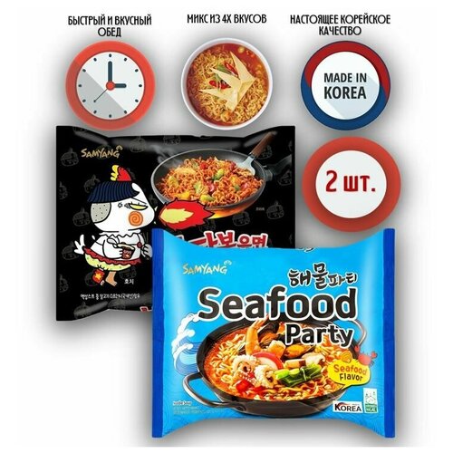 SamYang/Самьянг Лапша быстрого приготовления, Корея, микс из 2 шт. (Hot Chicken, Seafood party)