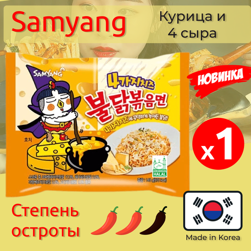 Лапша Самьянг / Самянг / Samyang Buldak, Quattro Cheese, Корейская Огненная лапша, 1 x 145 гр