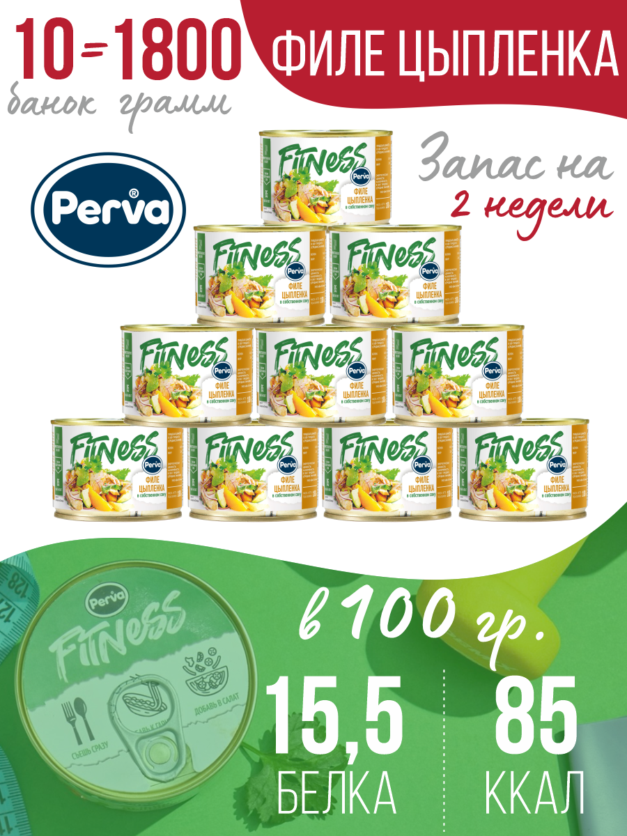 Филе цыпленка Perva в собственном соку Fitness, 180 г х 10 шт