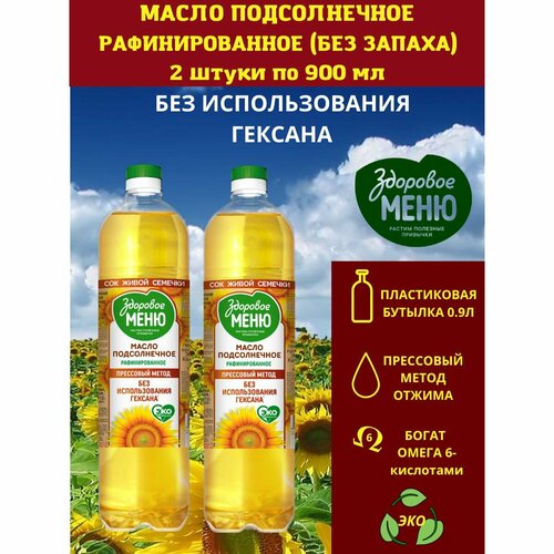 Набор 2 штуки. Масло подсолнечное рафинированное, дезодорированное, вымороженное "Здоровое меню" 0.9л