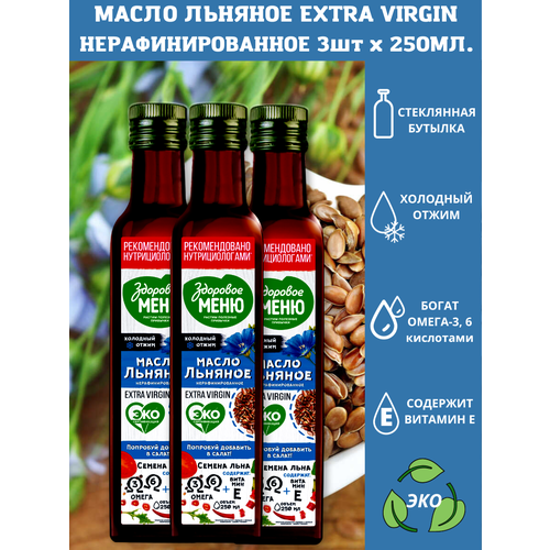 "Здоровое меню" Масло льняное Extra Virgin Нерафинированное 250 мл 3 штуки