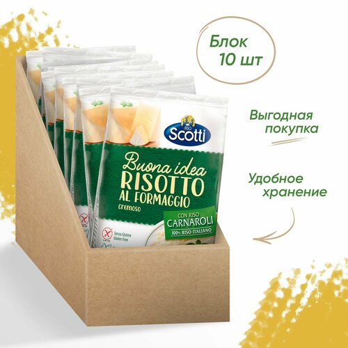 Рис белый Карнароли, Ризотто со сливочным сыром 10 шт, Riso Scotti Risotto Al Formaggio, 210 г, без глютена/Готовый гарнир, готовое итальянское блюдо