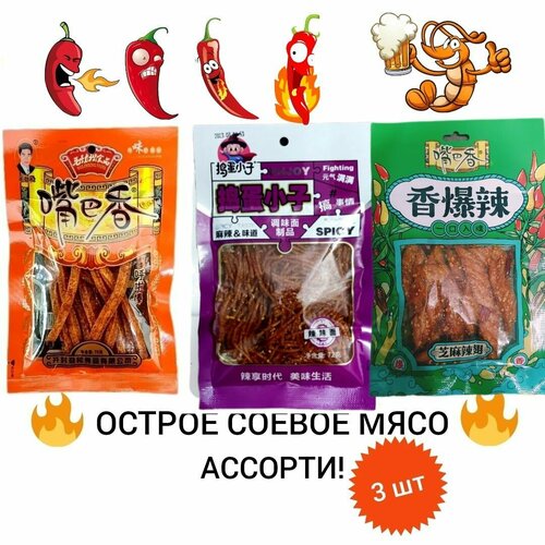 Острое соевое мясо ассорти вкусов 5 шт, острые снеки