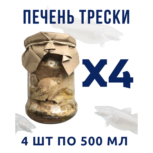 Печень трески натуральная кусочками премиум Мурманская / 4 банки по 500 мл