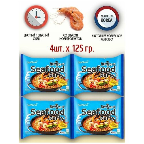 SamYang/Самьянг Лапша быстрого приготовления Seafood Party со вкусом морепродуктов, Корея, 4шт.