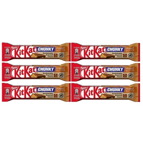 Батончик KitKat Chunky Peanut Butter молочный шоколад с хрустящей вафлей и арахисовой пастой, 42 г, 6 шт.