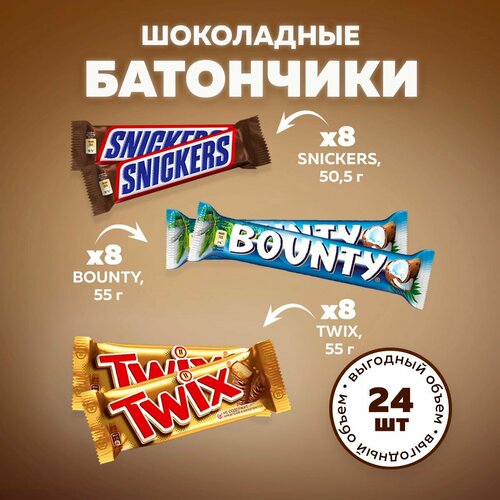 Snickers, 50.5 г + Bounty 55 г. + TWIX 55 г. 8 шт.
