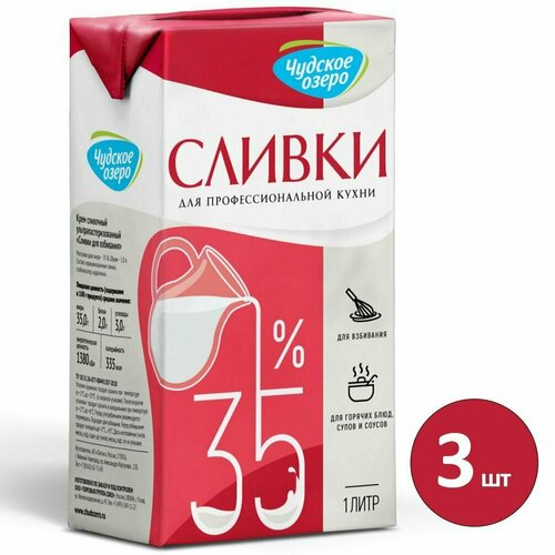 Натуральные сливки для взбивания Чудское озеро 35%, 3 шт по 1000 мл