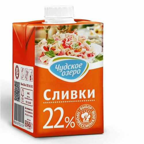 Натуральные сливки для соусов и кулинарии Чудское озеро 22%, 500 мл