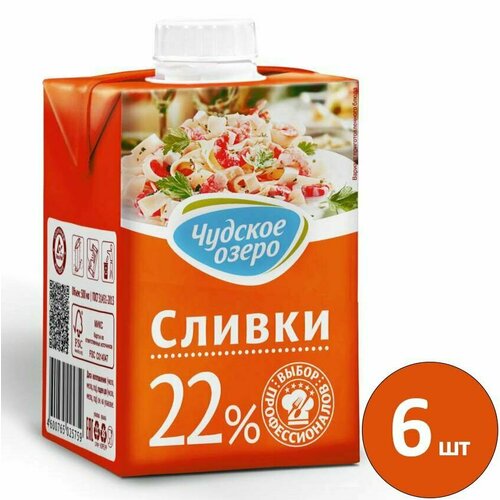 Натуральные сливки для соусов и кулинарии Чудское озеро 22%, 6 шт по 500 мл