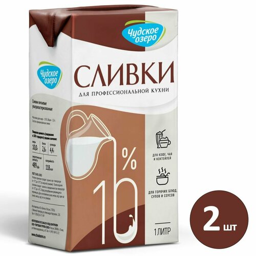 Профессиональные сливки для кофе Чудское озеро 10%, 2 шт по 1000 мл