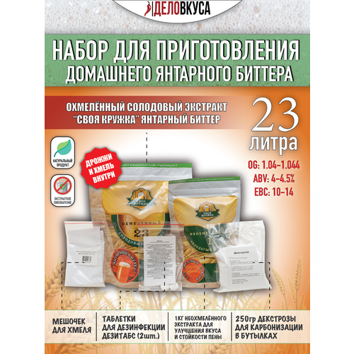 Комплект Своя Кружка Янтарный Биттер (неохмелённый концентрат + декстроза 0.25 кг + Дезитабс + мешочек)