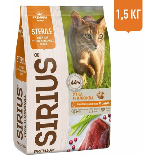 Sirius / Сухой корм для стерилизованных кошек Sirius Утка с клюквой 1.5кг 1 шт