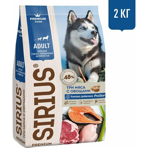 Sirius / Сухой корм для собак с повышенной активностью Sirius 3 мяса с овощами 2кг 1 шт