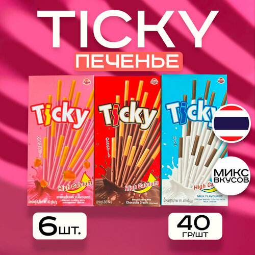 Печенье Тайские бисквитные палочки Ticky микс вкусов, 40 г х 6 шт.
