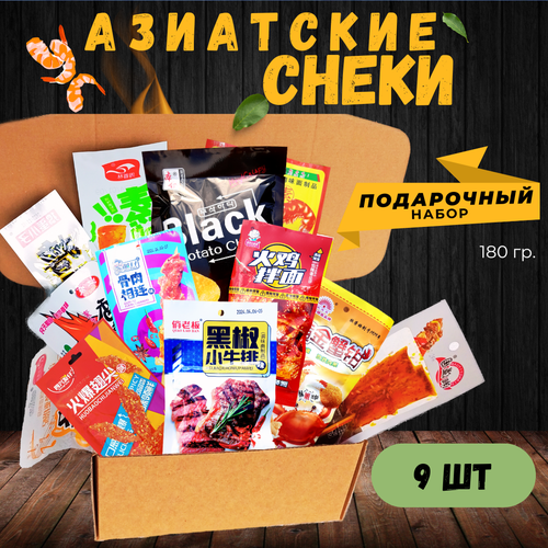 Острое соевое мясо, снеки китайские, закуска к пиву из Азии, чипсы / ASIA BEER BOX
