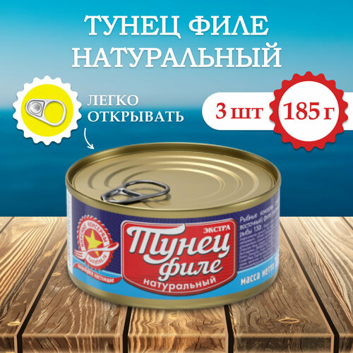 Тунец филе натуральный Вкусные консервы 185гр (3шт)