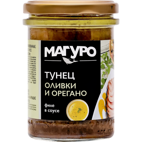 Тунец полосатый магуро филе в соусе Оливки-орегано с маслом, 200г