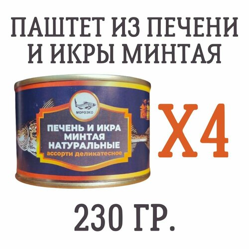 Паштет из печени и икры минтая морозко, 230 гр, 4 шт.