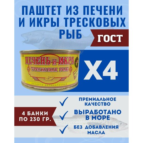Паштет из печени и икры тресковых рыб ГОСТ / 4 шт по 230 гр