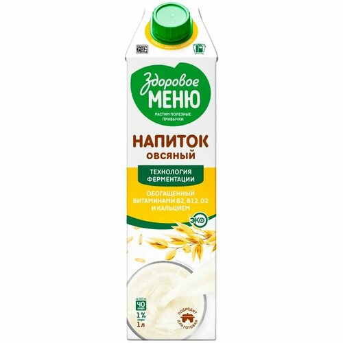 Напиток Здоровое Меню овсяный обогащенный кальцием и витаминами ультрапастеризованный, 1л