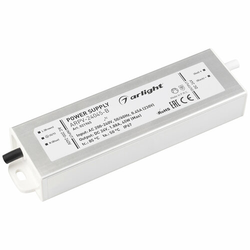 Блок питания ARPV-24045-B (24V, 1.9A, 45W) (Arlight, IP67 Металл, 3 года)